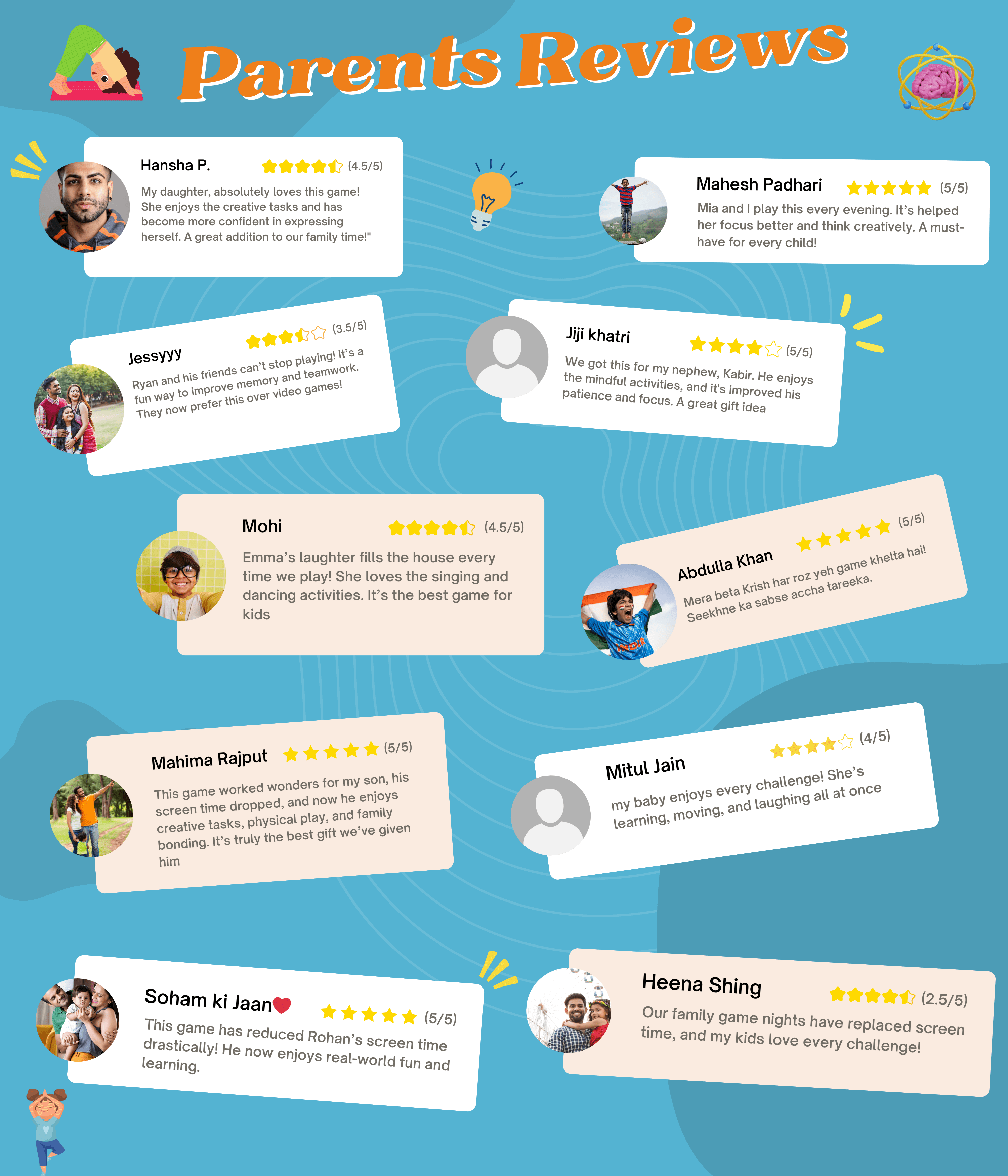 This game helps improve memory, thinking skills, creativity, physical activity, social interaction, and mindfulness, ensuring a screen-free, engaging learning experience.