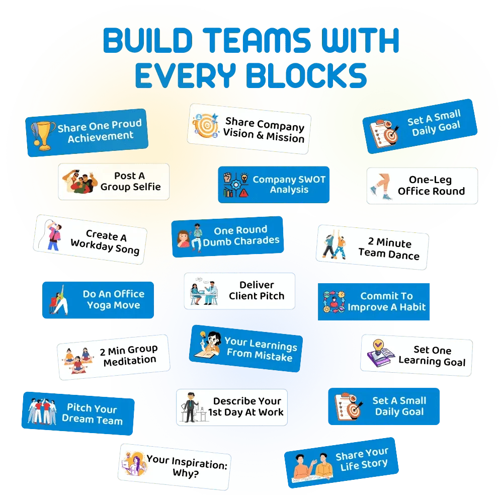 It’s a wooden block game where each block has a fun, meaningful task to spark reflection, team bonding, and creativity—perfect for energizing your workplace culture.
